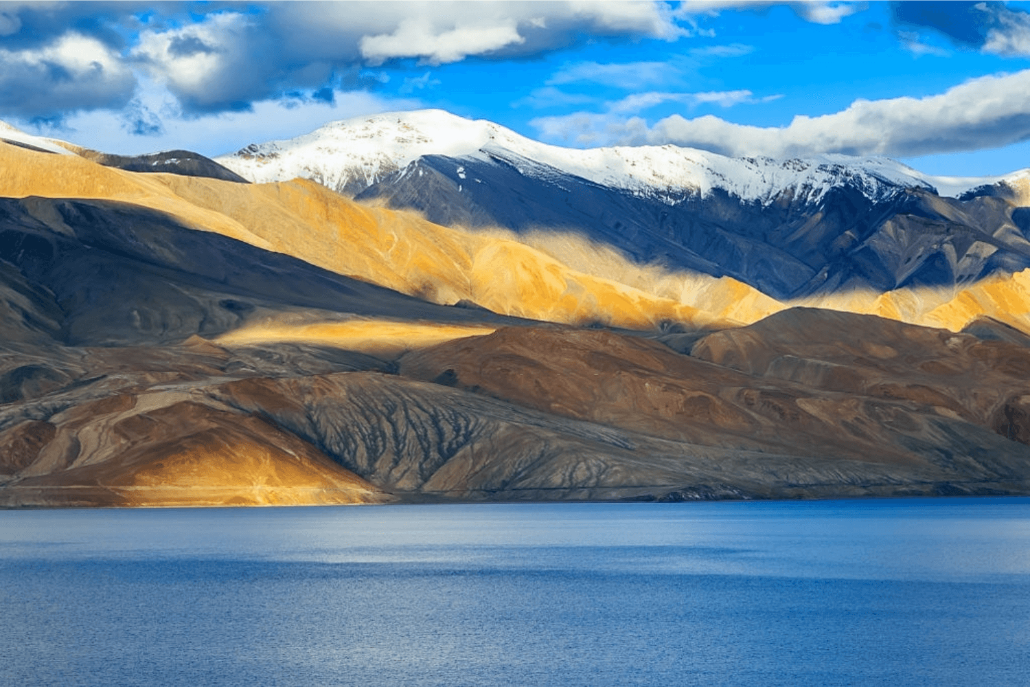 After early breakfast leave for Pangong Lake (14,500 ft), through Changla Pass 17,350 ft. (third highest motorable road in the world). The drive takes about 3-4 hours to reach. The lake is situated on the borders of India and Tibet. The lake is around 120 km long and 50 km in width. The lake is home to a large number of migratory and resident birds. Enjoy the beauty of the lake on the Banks of Pangong while appreciating the changing Colors and fascinating high altitude of the Lake. Drive back to Leh by the same route. Dinner and overnight stay in the hotel.
