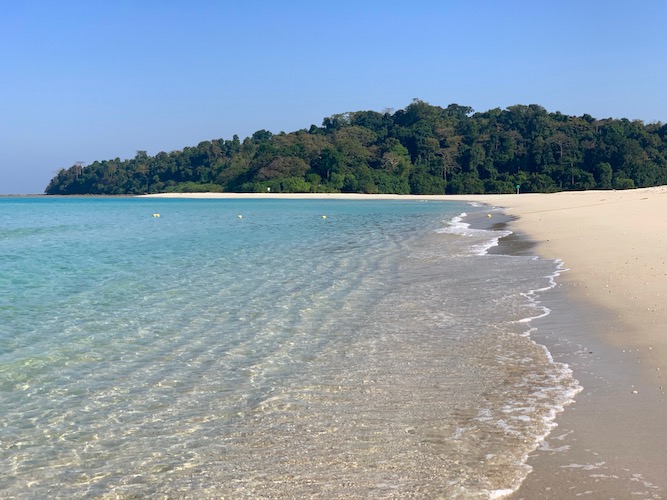 It is located in one corner of the Havelock Island surrounded by thick forests and excellent for solitude seekers and guest looking to do a bit of bird photography. The emerald seas, the tropical forests on one side of the road, the Kalapathars (black rocks) that decorates the coastline, the silken smooth silver sands and the sheer solitude makes this beach a great place to relax.