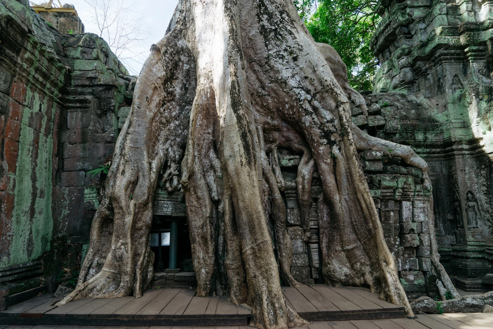 Today you will explore South Gate of Angkor Thom known as Big Angkor, 3km2 walled and moated royal city and was the last capital of the Angkorian Empire, the famous Bayon Temple was an architectural muddle, in part because it was constructed in a somewhat piecemeal fashion for over a century. Terrace of the Elephants is an impressive, two and a half meter tall, 300-meter-long terrace wall adorned with carved elephants and gradual that spans the heart of Angkor Thom in front of Baphuon - huge temple mountain in the heart of Angkor Thom, Royal Palace Area and Phimeanakas - impressive rite and sandstone pyramid. Terrace of the Leper King is at the north end of the Terrace of the Elephants, a double terrace wall with deeply carved nag as, demons and other mythological beings. Last you will visit Ta Prohm temple which is a wonderful combination of human genius and natural beauty! Giant trees have grown here for centuries.